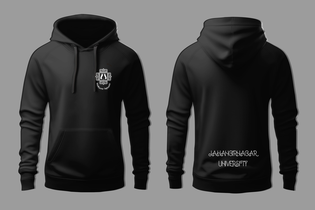 ডিজাইনের বর্ণনাঃ হুডির সামনের অংশে JU লোগো। পেছনে একটি বাবুই পাখির মডেল।